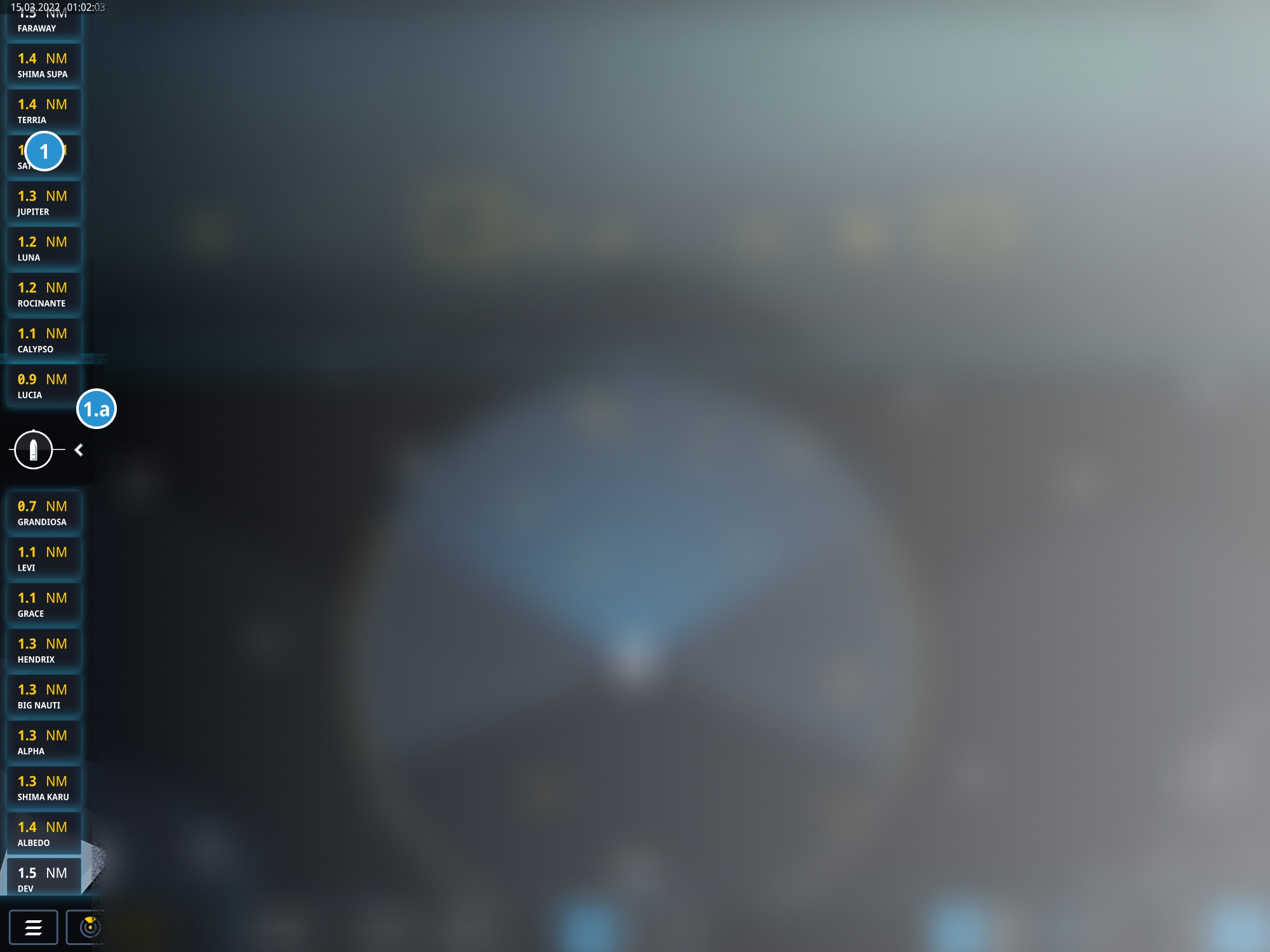 距離一覧は、小さな矢印①aを押すことで開閉できます。